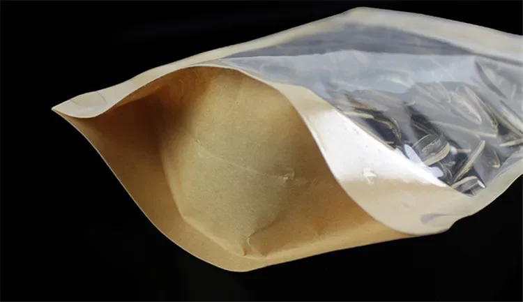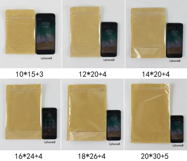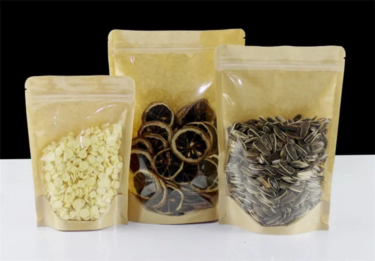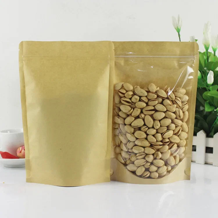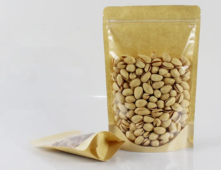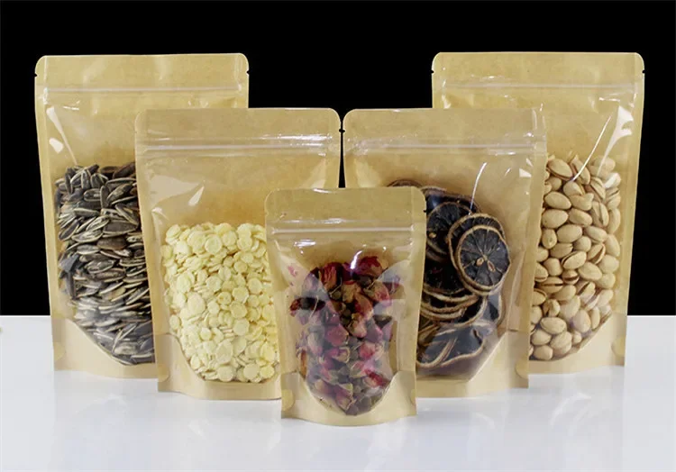 100Pcs Clear Stand Up Kraft Paper Ziplock Bags Reusable Storage Pouches for Matcha Cocoa Coffee Snacks Gifts for Tea Chocolate