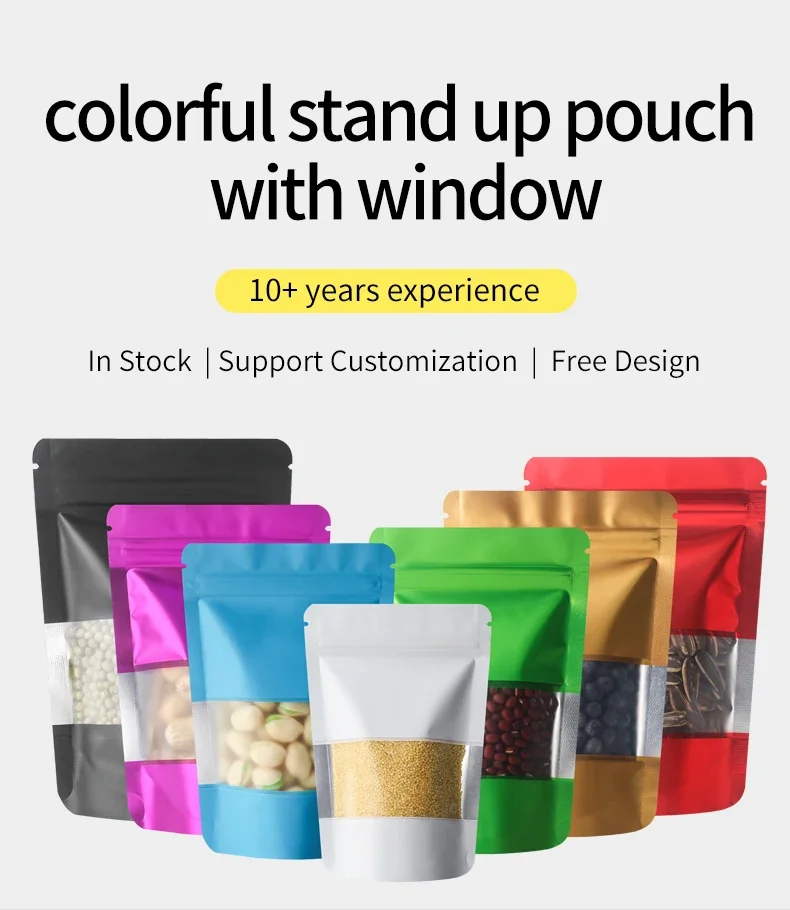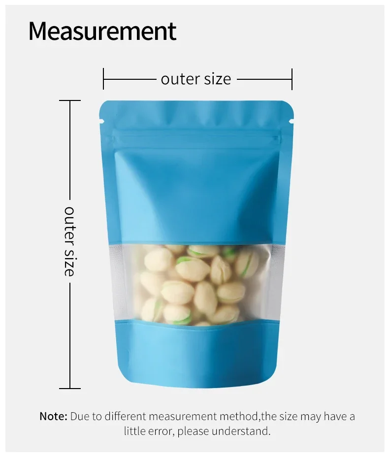 100Pcs Matte Aluminum Foil Mylar Bags Moisture Proof Self Standing Snack Storage Resealable Reusable Zipper Lock Pouches