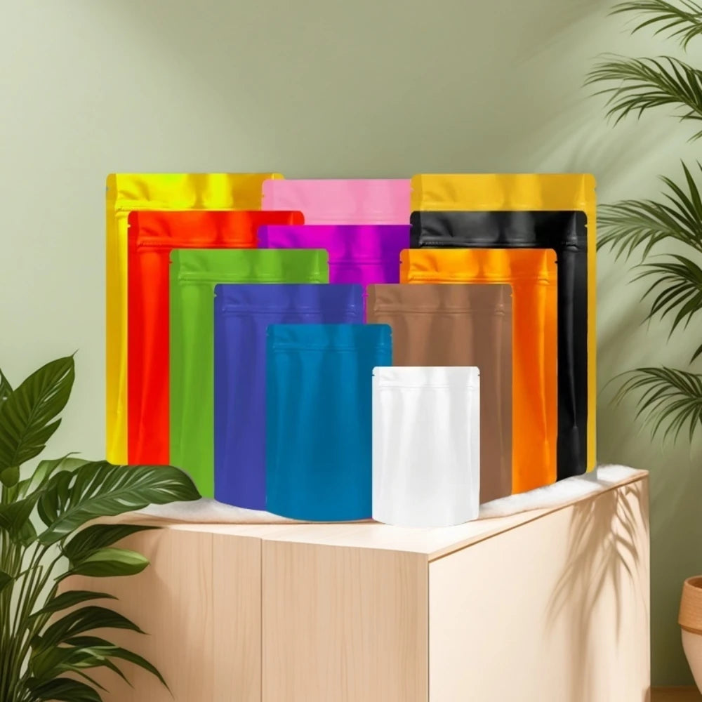 100Pcs Matte Aluminum Foil Ziplock Bags Thick Coffee Snack Tea Candy Pouches Resealable Moisture-Proof Durable Gift Packaging