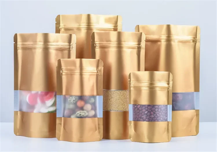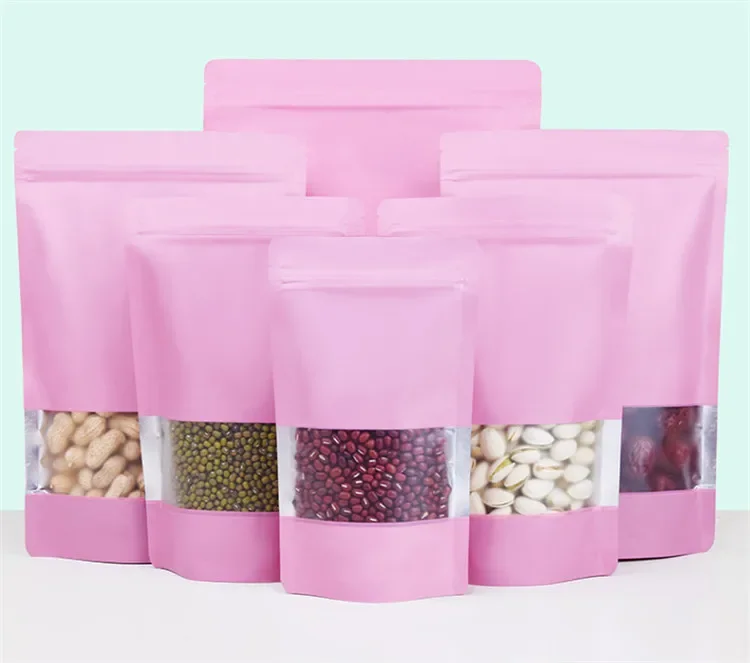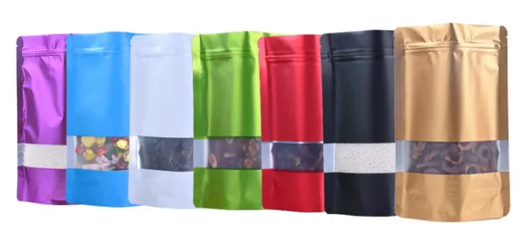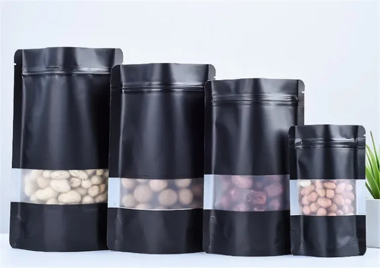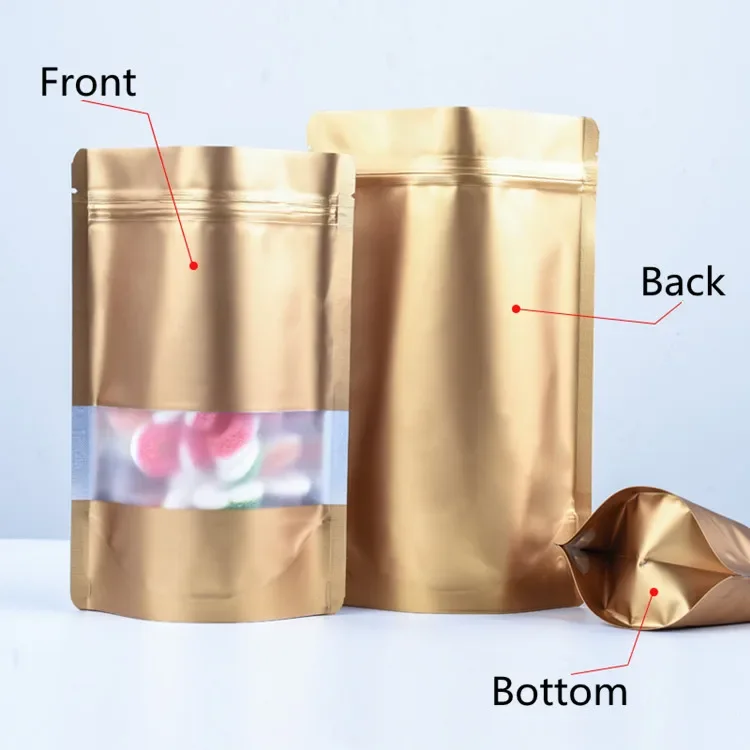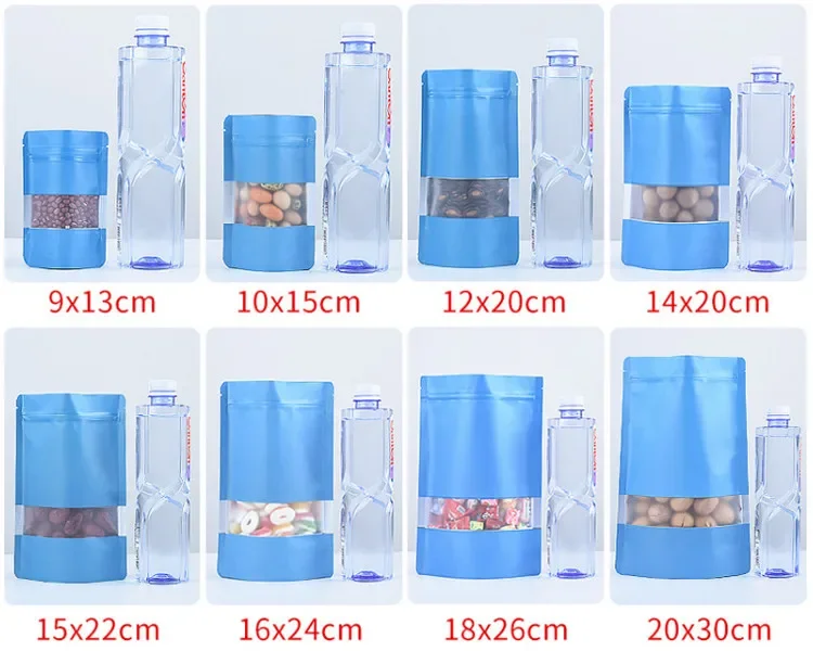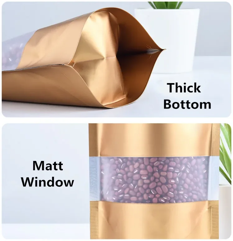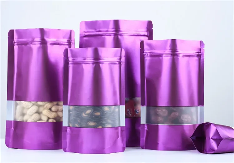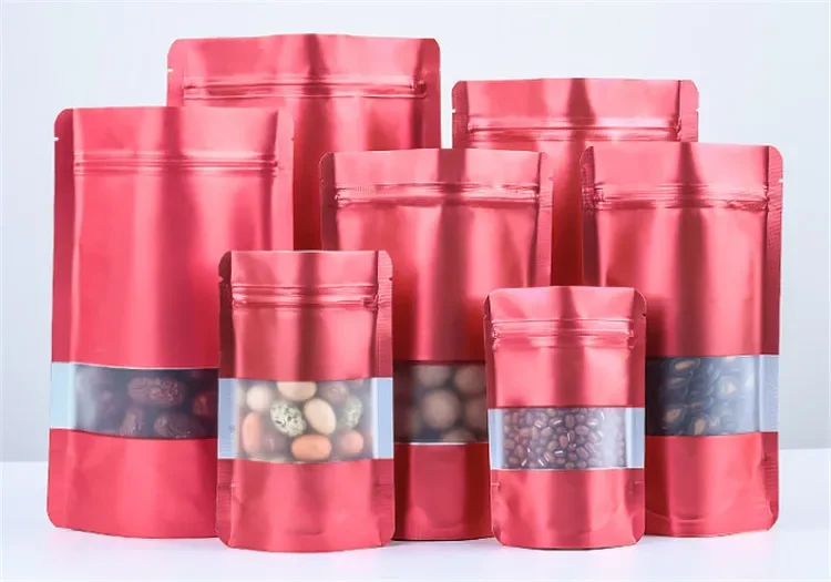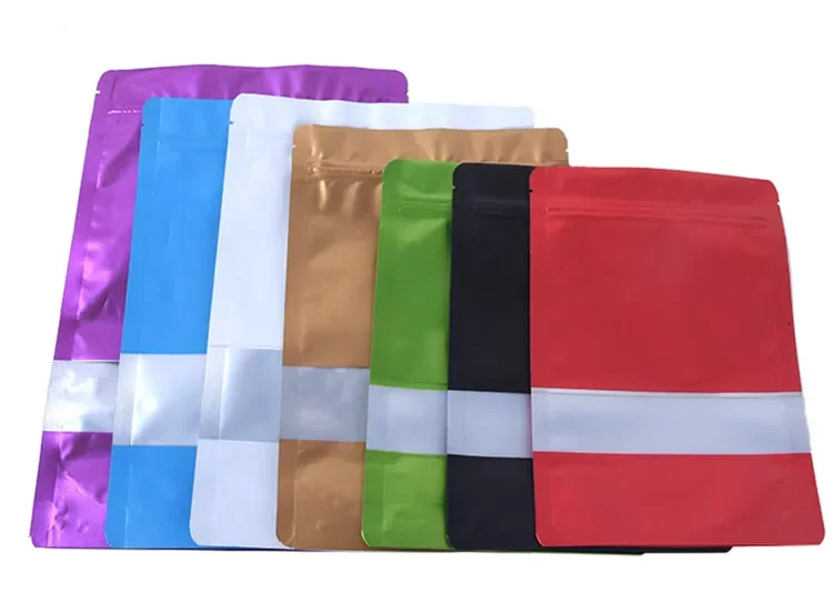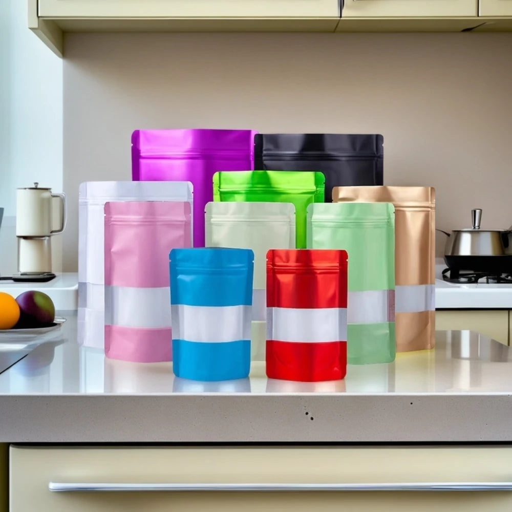 100Pcs Resealable Ziplock Bags Matte Aluminum Foil Stand Up Storage Pouches with Window for Snacks Beads Cereal Spices Candies