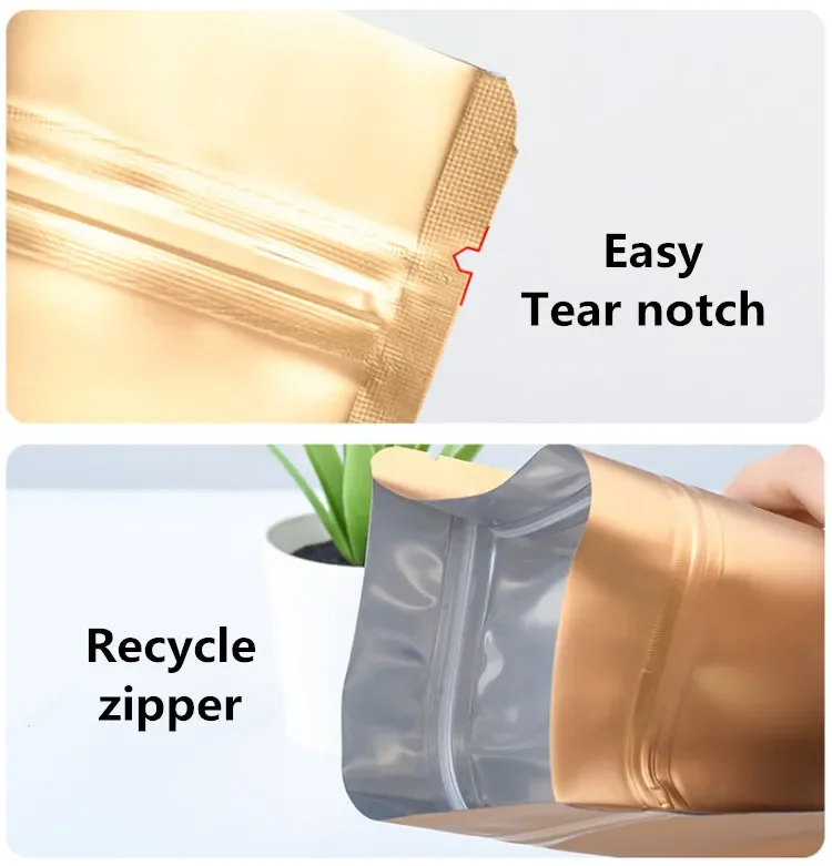 With Re' sealable zip lock options, easy to open and close. Extraction is on dead angle, protect sealing sex is strong, leak-proof quality. Humanized design of tear notches on sides, which makes tearing convenient. |
