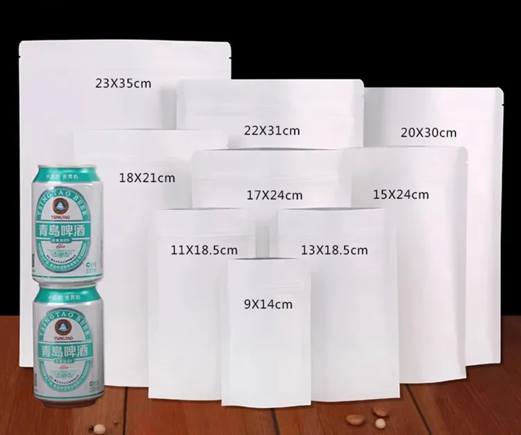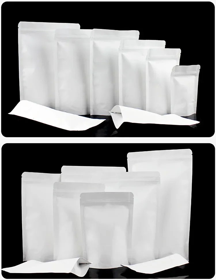 50Pcs White Paper Stand Up Ziplock Mylar Bags Heat Sealing Pouches for Coffee Snacks Spices Tea Dates Ideal Storage Solution