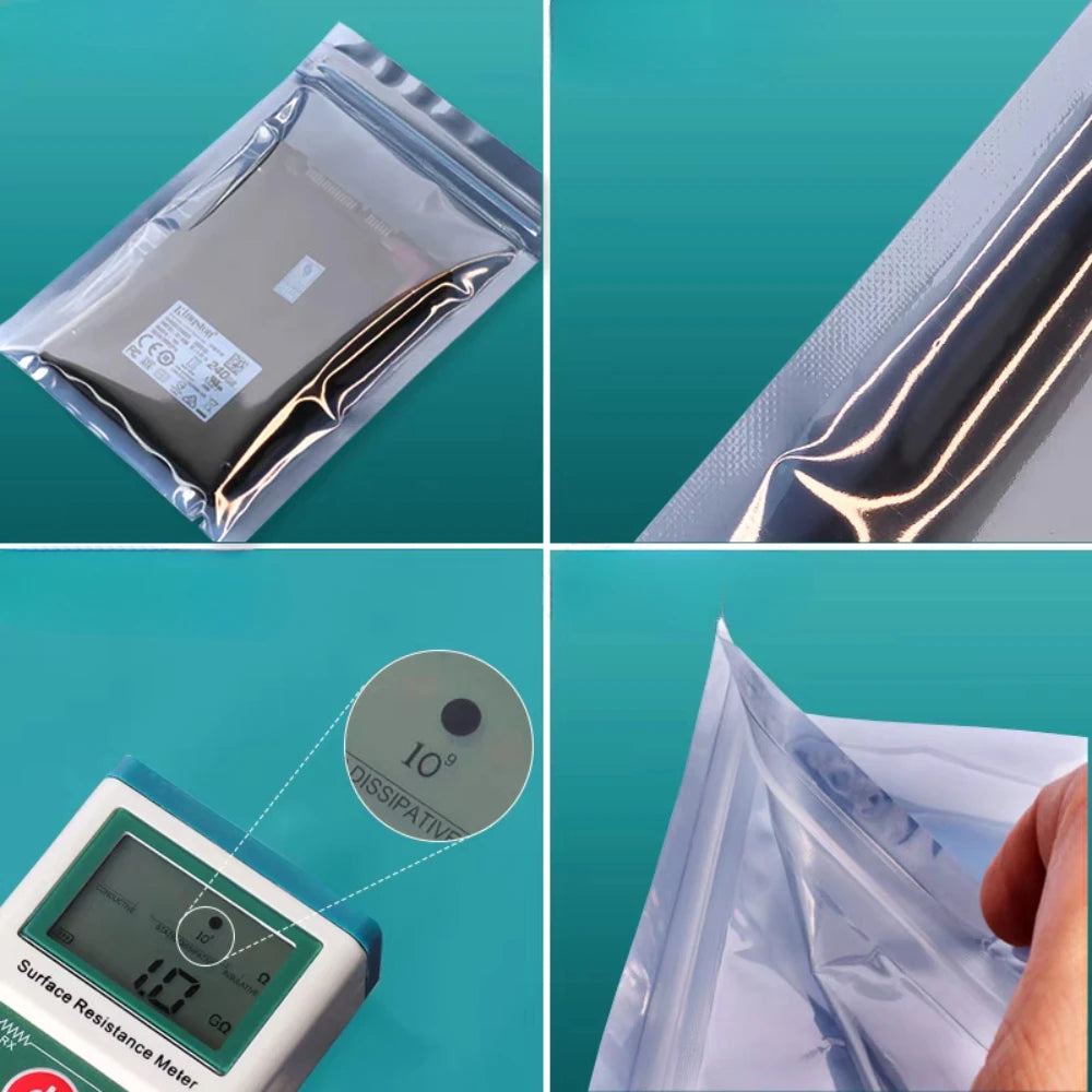 100 шт. ESD антистатические экранирующие пакеты с застежкой-молнией, многоразовые пакеты для электронных чипов, аккумуляторов, аксессуаров для жестких дисков USB