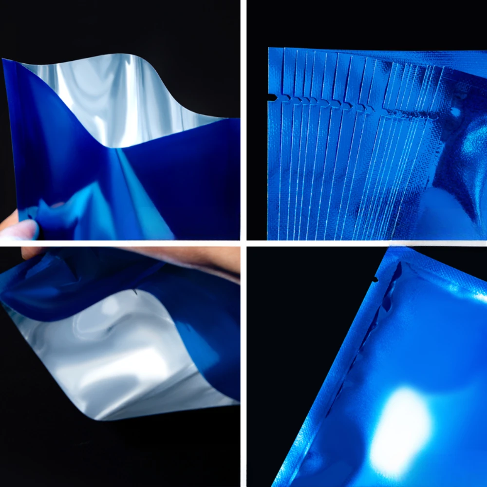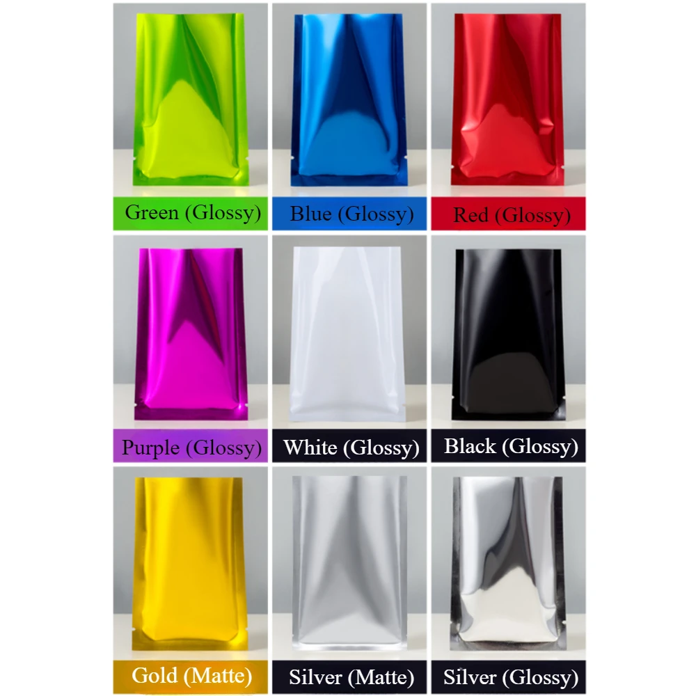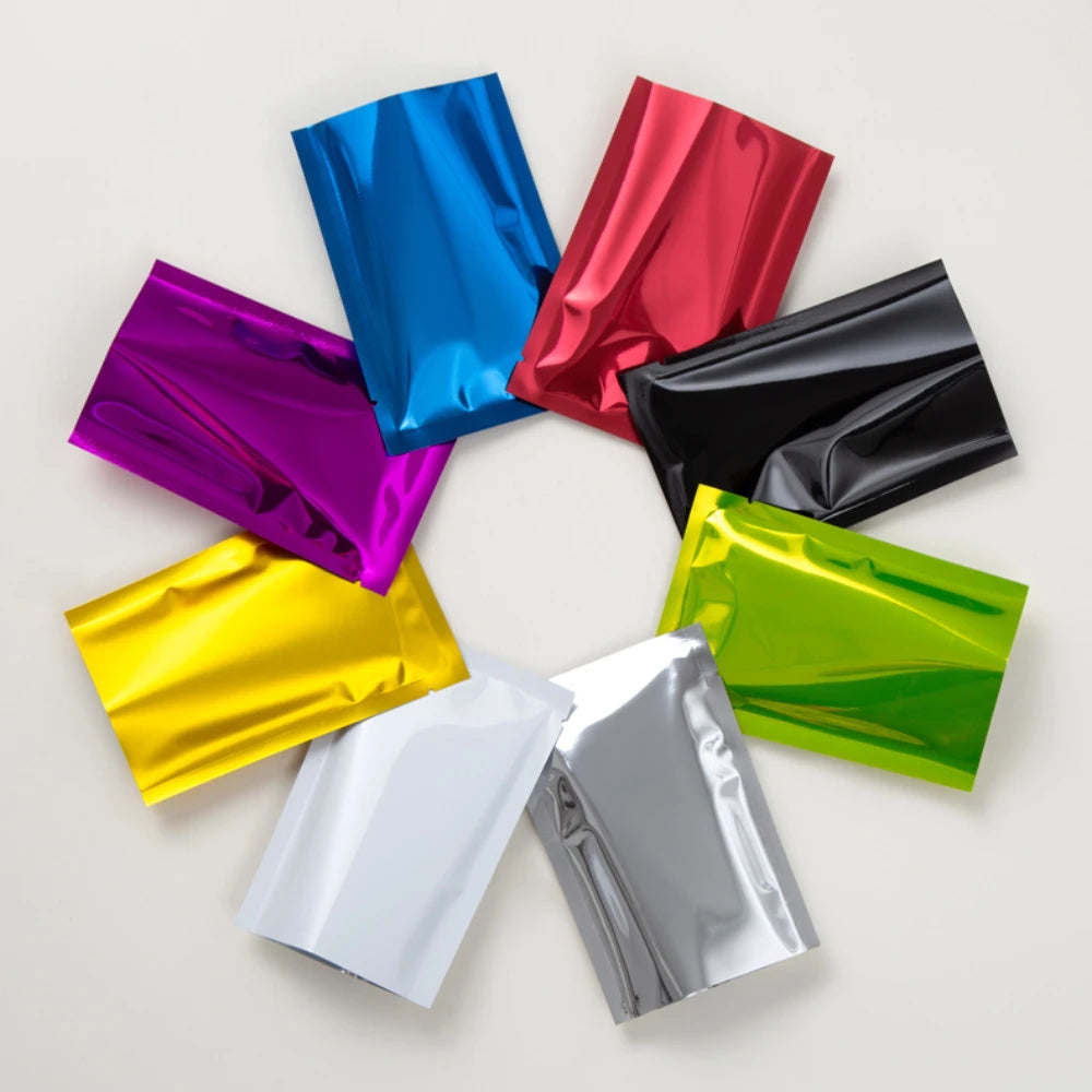 100 шт. цветных алюминиевых фольгированных пакетов с открытым верхом, герметичных, с термовакуумным запечатыванием, с насечкой для упаковки еды, конфет, закусок, кофе, чая, орехов и бобов