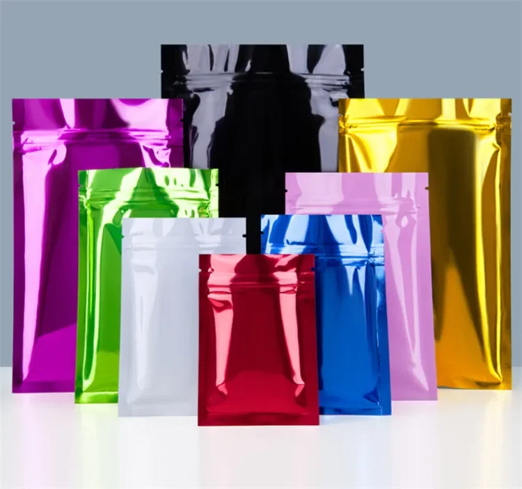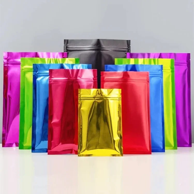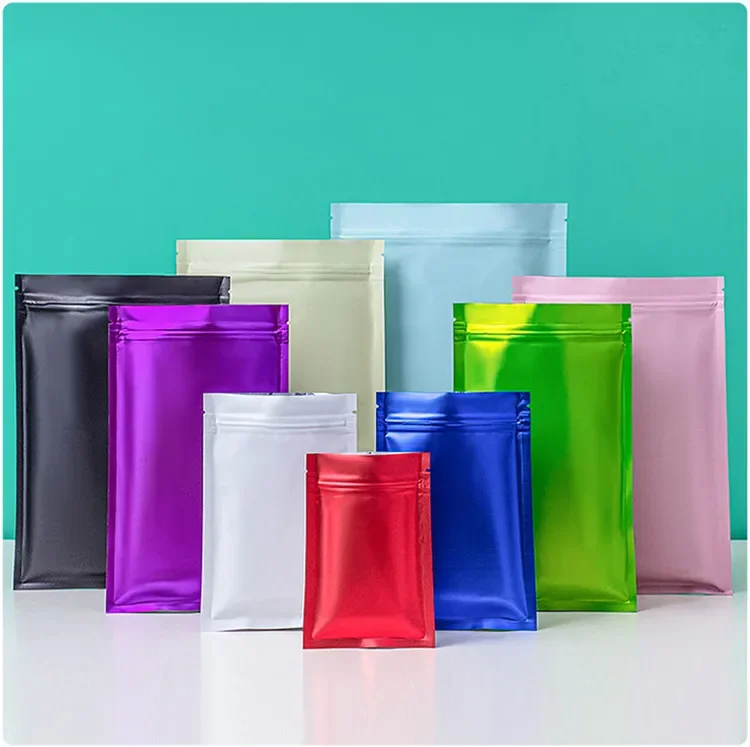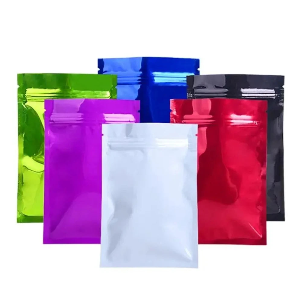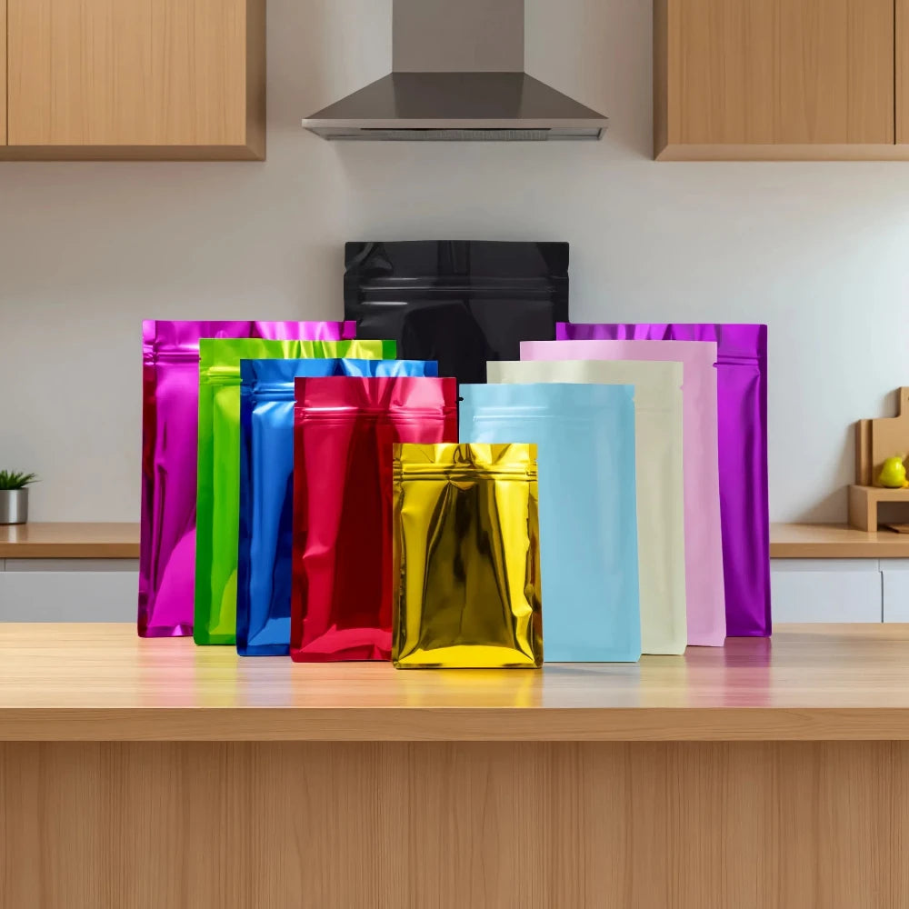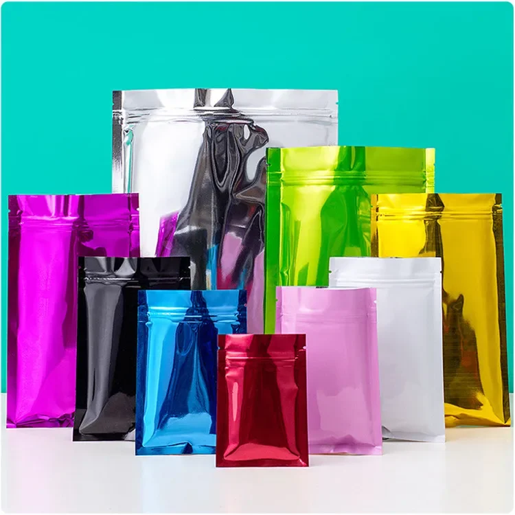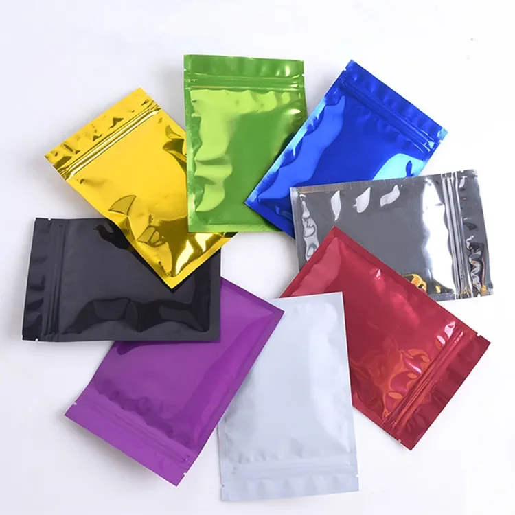 100 шт. многоразовых плоских глянцевых матовых алюминиевых фольгированных пакетов с застежкой-молнией, идеально подходящих для упаковки кофе, специй, семян, закусок, конфет и чая