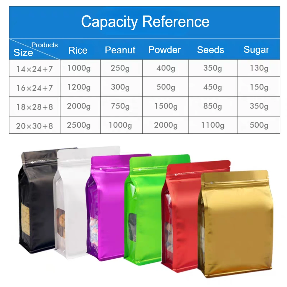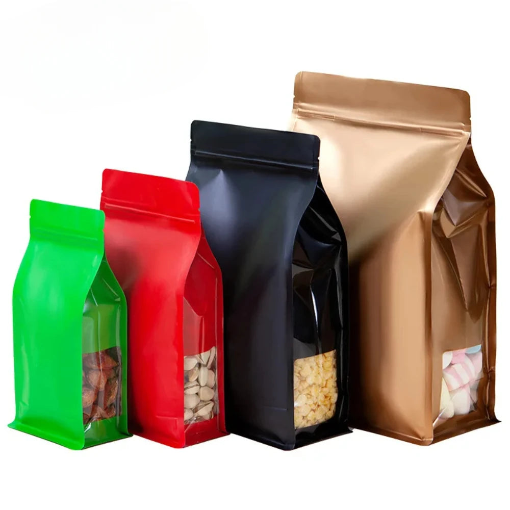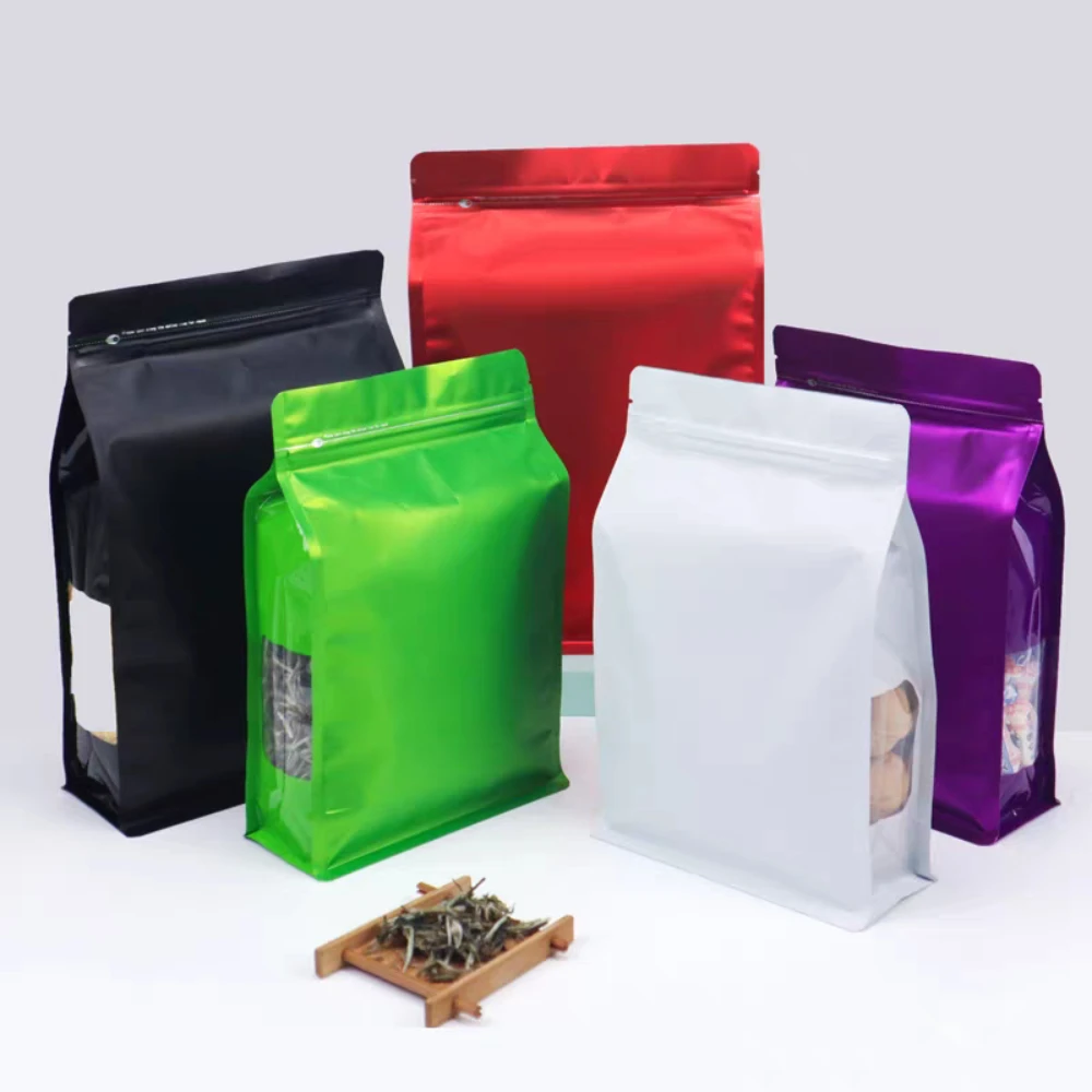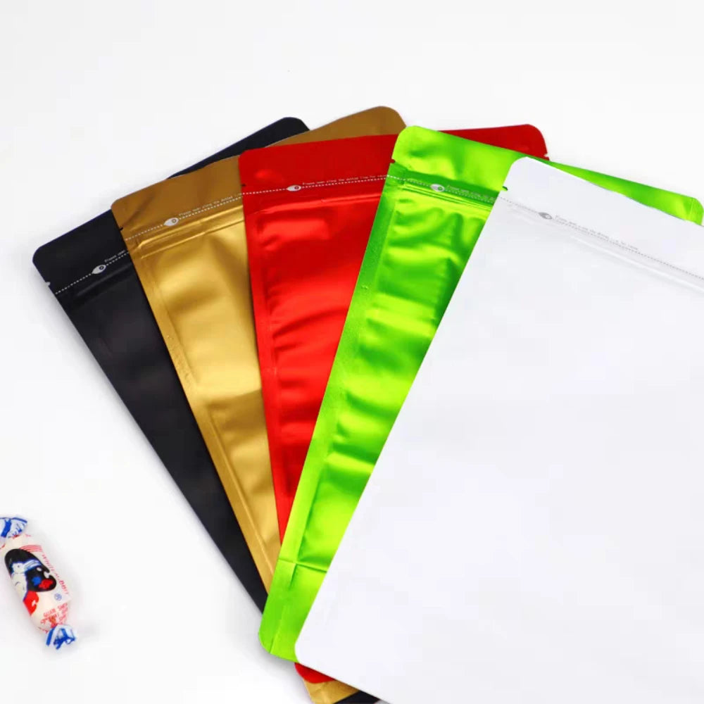 50 шт. многоразовых пакетов из алюминиевой фольги с застежкой-молнией, с прозрачным окошком для чая, кофе, закусок, конфет, термосвариваемых упаковок