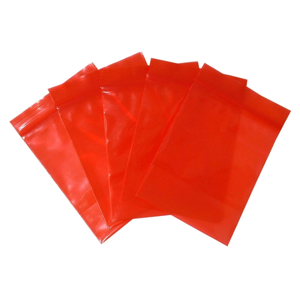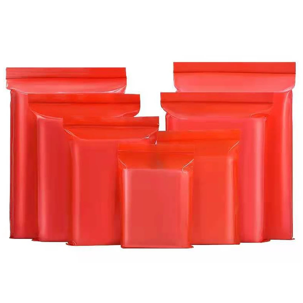 Red Plastic Zip Lock Self Seal Bag, Reusable Flat Zipper Pouches, Small Gift, Grocery Craft Storage, 100Pcs